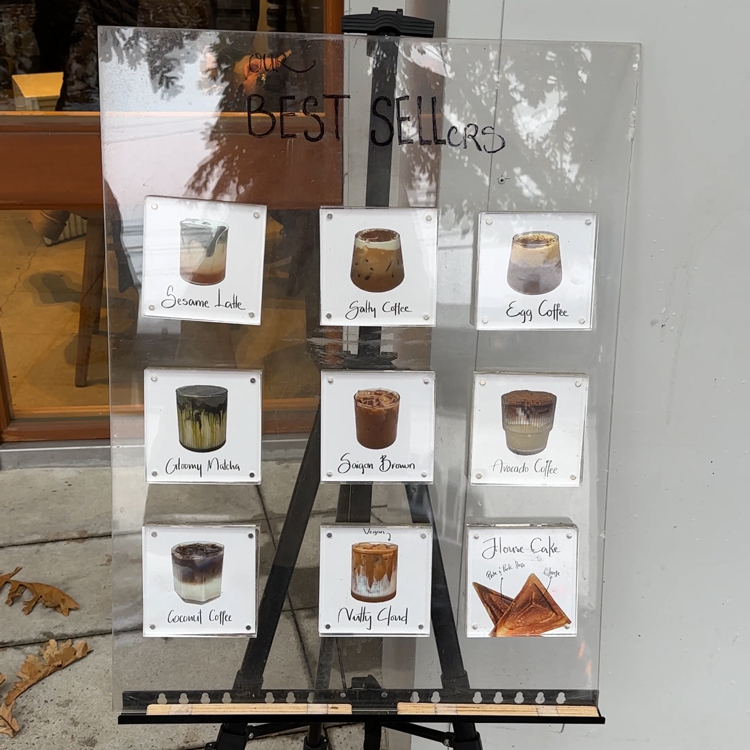 Aroom is best known for its Vietnamese Phin-brewed coffee and signature specialty drinks that highlight both flavor and artistry. The menu features favorites like Egg Coffee, Black Sesame Latte, Avocado Coffee, Coconut Coffee, and Salty Coffee. Each drink balances the depth of roasted Vietnamese beans with creamy textures and a touch of sweetness.